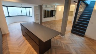 בית בקרית טבעון אדריכלית: תמר בנימיני פרקט שכבתי מסוג אלון אירופאי מבוקע מעושן בגמר שמן. האדריכלית ביקשה ליצור בית עם אוירה חמה וכפרית בסגנון אירופאי קלאסי. השמן יושם בבית הלקוח לאחר התקנת הפרקט בגוון לפי בחירת האדריכלית. צילום – אלדד מאסטרו